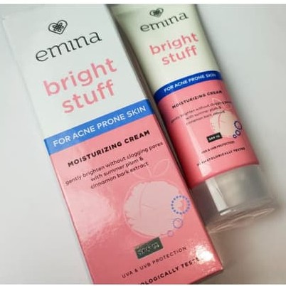 EMINA Brightstuff Tone Up Cream vs Krim Pelembab (White Bagusan?) Bracelelicca. Tinjau barang-barang cerah Emina untuk kulit rawan jerawat !! Dapat membantu meningkatkan beberapa kondisi kulit termasuk jerawat, rosacea, dan dermatitis atopik. Tidak hanya pelembab tetapi tahu banyak lagi: menjaga lemak kulit di antara sel-sel kulit kita dalam keadaan sehat (kristal cair), melindungi dari iritasi, membantu memulihkan penghalang. Temukan daftar lengkap bahan Emina Brigthstuff untuk krim pelembab kulit rawan jerawat di sini!
